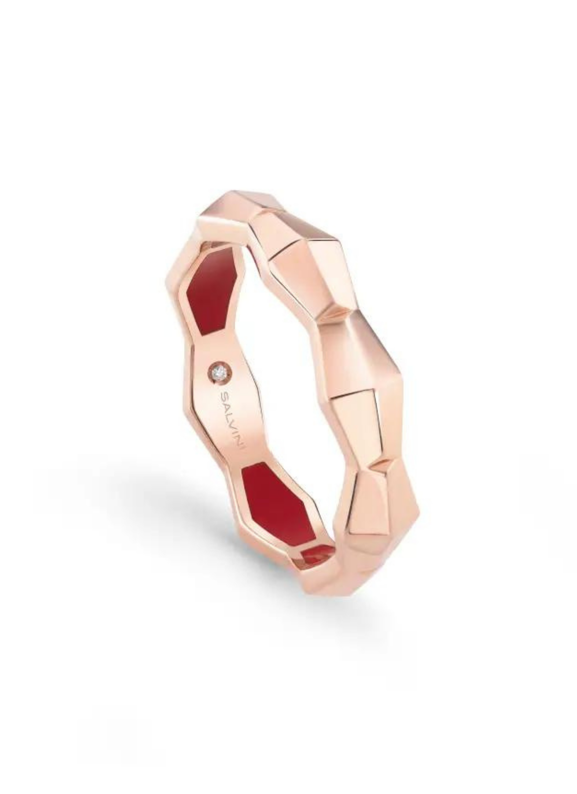 Las distintivas escamas de una serpiente y el color rojo de la cerámica híbrida, un material tecnológico que ofrece un efecto cromático intenso y resistente, resultan verdaderamente evocadores en esta línea única de joyas. Los anillos de la colección se convierten en los compañeros de estilo imprescindibles para personalidades atrevidas que también pueden apilarse para lograr un look de múltiples capas para marcar tendencia.