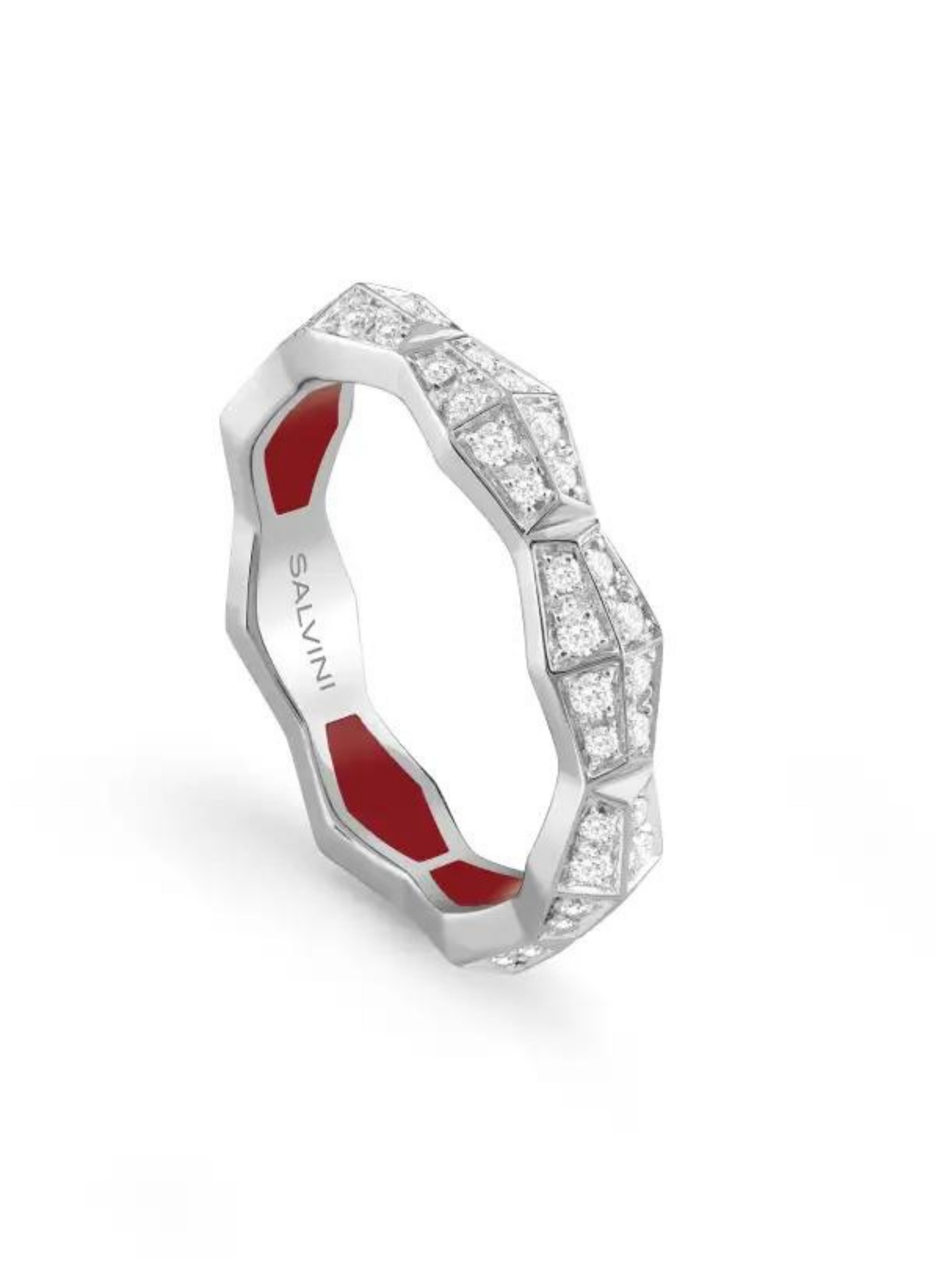 Las distintivas escamas de una serpiente y el color rojo de la cerámica híbrida, un material tecnológico que ofrece un efecto cromático intenso y resistente, resultan verdaderamente evocadores en esta línea única de joyas. Los anillos de la colección se convierten en los compañeros de estilo imprescindibles para personalidades atrevidas que también pueden apilarse para lograr un look de múltiples capas para marcar tendencia.