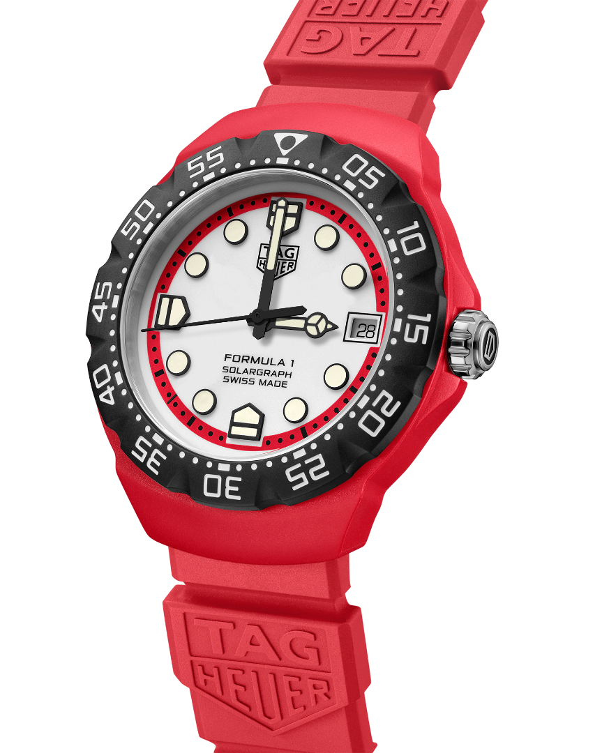 El TAG Heuer Formula 1 Solargraph (38 mm) luce una estética audaz y llamativa gracias a su caja roja TH-Polylight. Diseñado para audaces aventuras urbanas, este exclusivo reloj combina colores vibrantes con tecnología solar de vanguardia, convirtiéndolo en una pieza destacada de la colección TAG Heuer Formula 1.