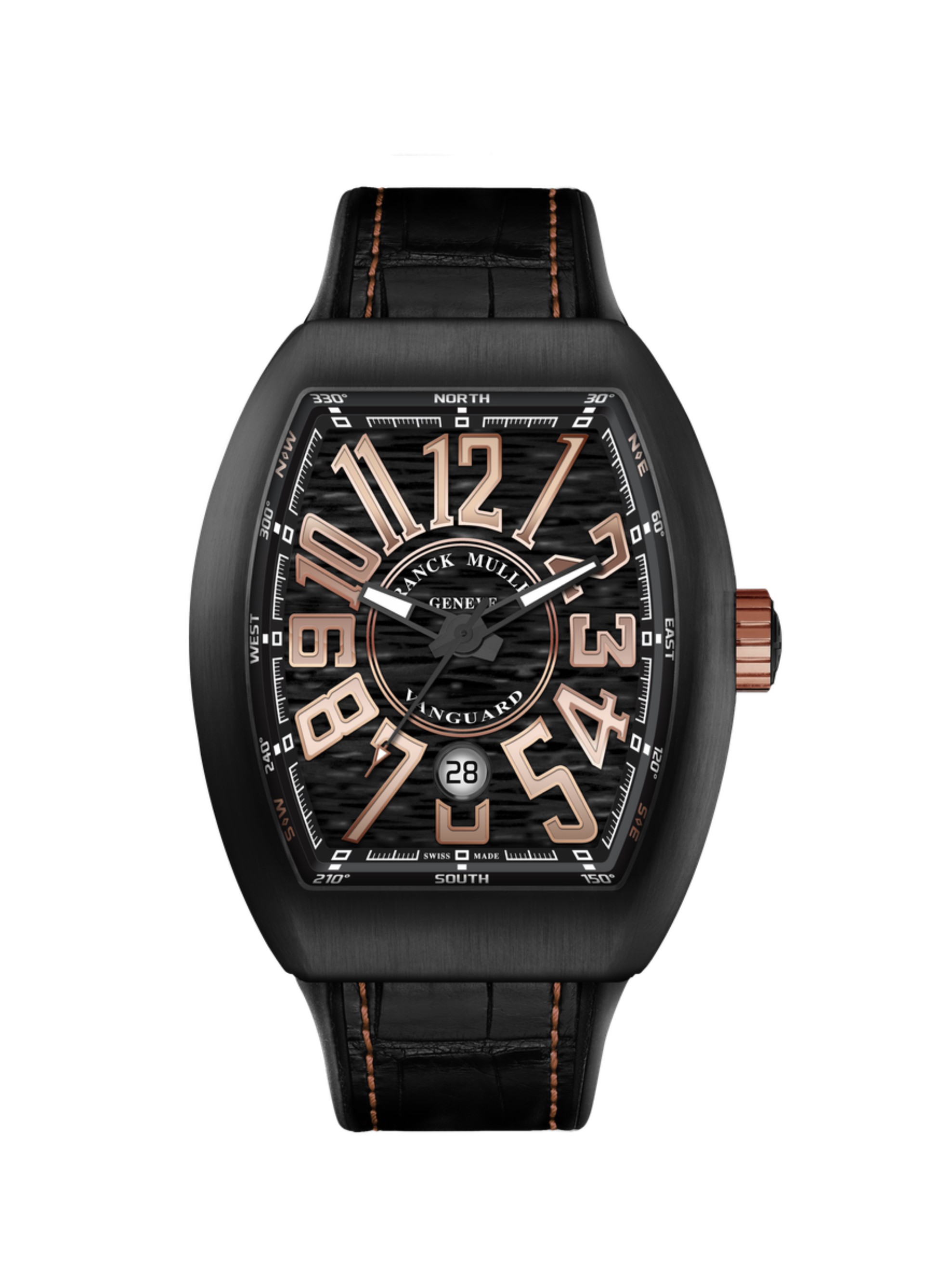 Distinguido por su forma deportiva de tonel, el Vanguard™ ofrece una estética limpia y un diseño verdaderamente único. Con un gusto refinado, las inserciones situadas a ambos lados de la caja combinan de manera elegante con el color de los números y de la correa, aportando la máxima elegancia y estilo.